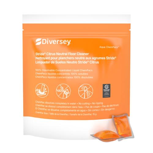 Diversey® Aqua Chempacs, Stride® Citrus Neutral Floor Cleaner, 15g