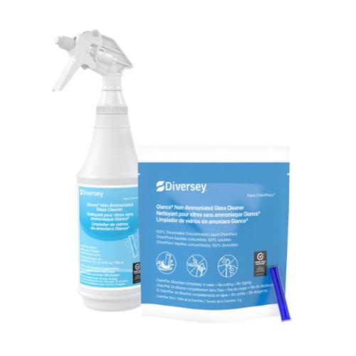 Diversey® Aqua Chempacs, Glance® Non-Ammoniated Glass Cleaner Kit, 3g