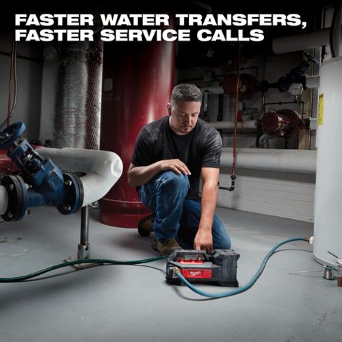 'Faster Water Transfers, Faster Service Calls. The M18™ Transfer Pump Brings New To World Cordless Innovation To The Industry With The Fastest Setup In The Marketplace. With A Self-Priming Pump, You Can Connect And Go Quicker Than Ever. The Tools Flexible Impeller And Powerful Pump Moves Water At Up To 480 Gallons Per Hour, Generates Up To 18 Of Lift And Produces Up To 75 Of Head Height. As A Part Of The M18™ System Of Tools, It Is Powered By Redlithium™ Battery Packs, Which Deliver Up To 240 Gallons Moved Per Charge On A XC5.0 Battery Pack. Onboard Redlink™ Intelligence Can Recognize When The Tool Stops Moving Water And Automatically Shuts Itself Off To Avoid Dry Pumping. Additionally, Redlink™ Provides Optimized Performance, And Overload Protection Abusive Situations.