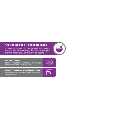 • Prepare all types of rice plus quinoa, oatmeal and cream of wheat