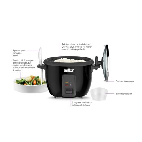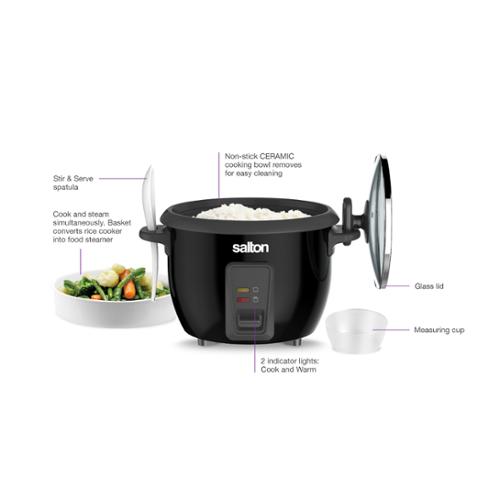 • Accessories included: Steamer basket, non - stick rice bowl, measuring cup and ‘Stir & Serve' spatula