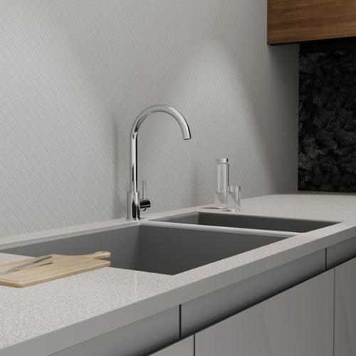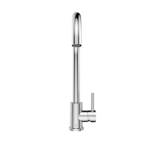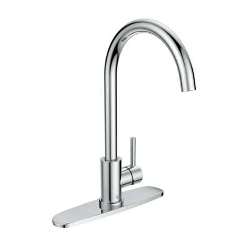 Sleek And Water-Efficient, This Polished Chrome Kitchen Faucet Features Single-Hole Installation