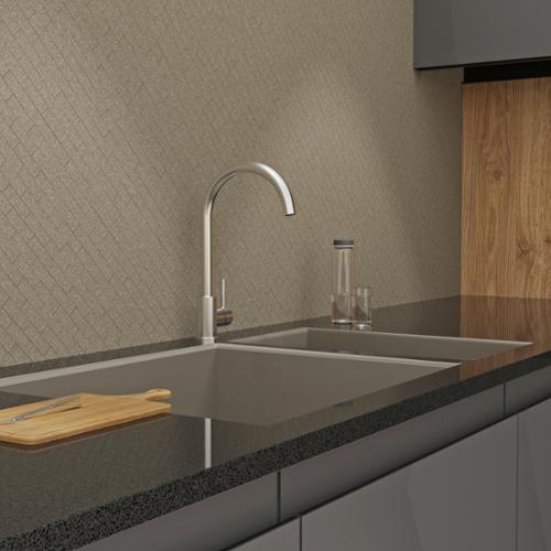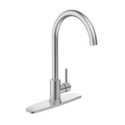 Sleek And Water-Efficient, This Stainless Steel Kitchen Faucet Features Single-Hole Installation • With A Swivel Spout And Forward-Rotating Lever Handle For Easy Use • Built With A Durable Stainless Steel Body. • It Delivers 5.7 L/Min (1.5 Gpm) At 60 Psi, Includes A Neoperl® Aerator, And Comes With Flexible Braided Connectors Plus A Cover Plate For 8” C/C Sinks. • Mfg #1000000716