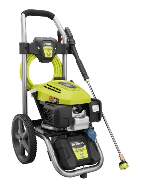 The RYOBI 3100 PSI Pressure Washer is engineered to handle even your toughest jobs. With a powerful Honda GCV170 167cc premium gasoline engine, for easy, reliable starting. This RYOBI Pressure Washer delivers 3100 PSI of force for quick cleaning of driveways, decks, windows and other areas around the house. Featuring a durable, compact frame design and large 12 in. flat-free wheels this pressure washer is designed for easy transport. The 35 ft. non-marring high pressure hose provides 40% longer reach for access to even the toughest areas. The on-board detergent tank offers hassle-free cleaning by eliminating the need to drag a bucket and hose behind you. For added convenience, the RYOBI 3100 PSI Pressure Washer is equipped a 5-in-1 quick-change-over nozzle for versatile cleaning.