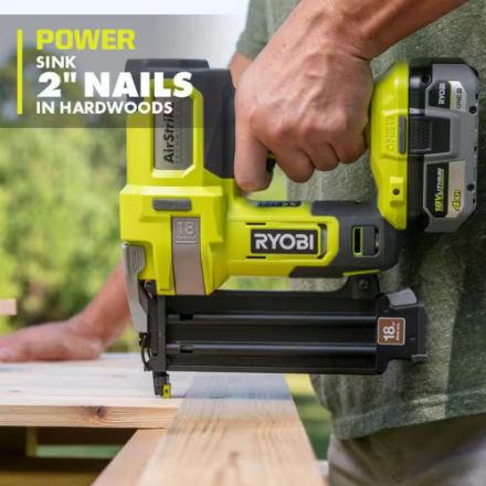 Expand your RYOBI 18V ONE+ System with the 18V ONE+ Cordless AirStrike 18-Gauge Brad Nailer (Tool Only). This Brad Nailer features AirStrike Technology, which eliminates the need for noisy compressors, bulky hoses, or expensive gas cartridges. This means faster setup and easy maneuverability on the job site. The RYOBI P321 Brad Nailer is capable of sinking up to 2 in. nails in hardwoods. Additionally, it is the lightest cordless brad nailer in its class, which helps prevent user fatigue. This nailer allows for extended periods of continuous work by sinking up to 1,900 nails per charge. It offers a 45% smaller nose for tight spot access and superior drive quality, compared to P320. There is also a tool-free depth of drive adjustment that allows for proper setting of nail heads. This tool is backed by the RYOBI 3-Year Manufacturer's Warranty and includes 2 non-marring pads and an operator's manual. Battery and charger sold separately.