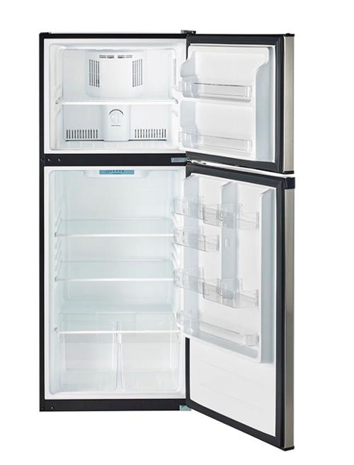 • Stainless Steel • Three Full Width Glass Shelves • Two Clear Vegetable Crispers • Contoured Door With High Gloss Finish • Frost-Free • Reversible Door • 59-7/8H x 24W x 28-5/8"D • Mfg #MPE12FSKSB