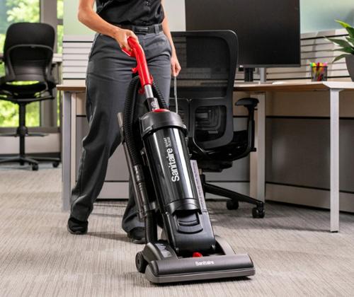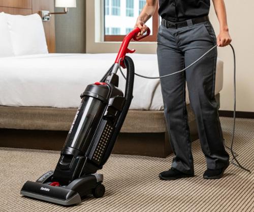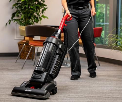 The FORCE® QuietClean® Commercial Upright Vacuum with dirt cup and 15" cleaning path provides an exceptional clean certified with the CRI Gold Seal of Approval. Lower your cost of ownership with a bagless dirt cup. Featuring a washable HEPA filter to capture 99.97% of particles for cleaner emissions. FORCE® is ideal for daytime cleaning with a sound level of 70.6 dBA. Includes on-board tools and stretch hose for above-the-floor cleaning.