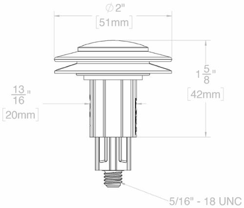 ▪ 2" Bath Drain Plug Clicker ▪ Chrome Plated Brass Top ▪ Large Stainer 5/16" Threaded Post ▪ Mfg #330BCP-L