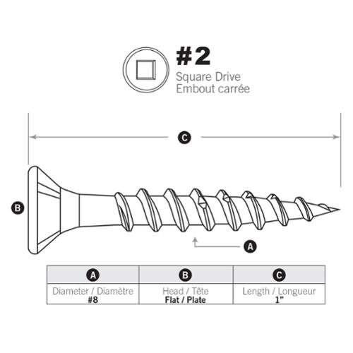 Reinforced neck for increased driving torque. Bugle head for self countersinking. Square drive for no-slip cling fit. Coarse threads for extra holding power and faster uniform draw-down. Extra Sharp point easily penetrates wood without pre-drilling. Sawtooth threads for faster driving of screws without splitting.