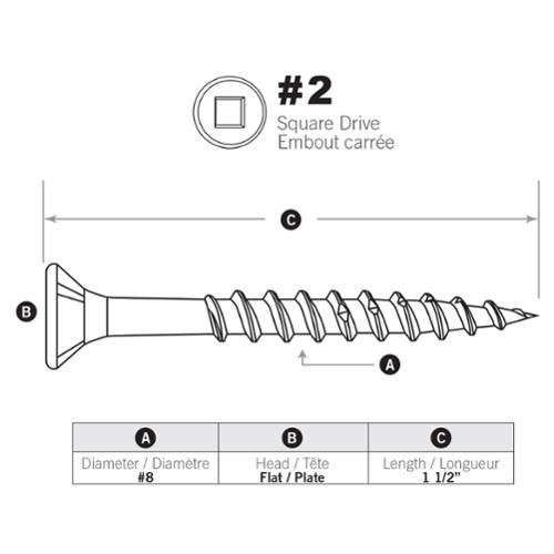 Reinforced neck for increased driving torque. Bugle head for self countersinking. Square drive for no-slip cling fit. Coarse threads for extra holding power and faster uniform draw-down. Extra Sharp point easily penetrates wood without pre-drilling. Sawtooth threads for faster driving of screws without splitting.