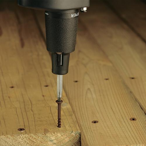 The Paulin brand deck screw is an exterior rated screw designed for wood to wood fastening. The specifically formulated coating is design to prevent rust, staining or streaking in all pressure treated wood. The DURA-GRIP square drive head improves drive torque performance and helps to avoid slipping. The Saw Tooth threads provides a faster driving screw while reducing wood splitting. An average of 4 to 6 screws are required per square foot when using a 2 x 6 or 5/4 x 6 wooden decking.