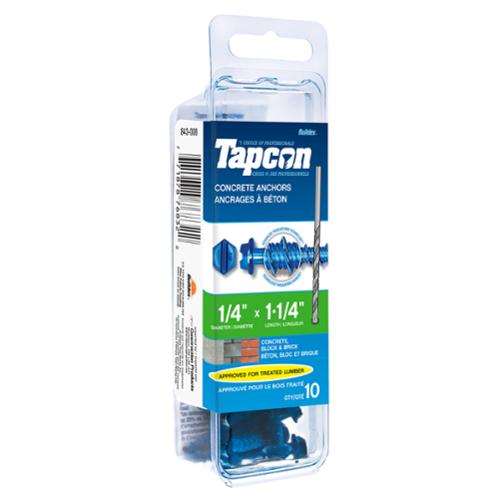 As the original Concrete screw anchor that revolutionized the construction world, Tapcon brand Concrete anchors deliver the ease of use, superior precision and the unparalleled performance that professionals demand. Tapcon Concrete screw anchors draw from its unique ability to TAP its own threads into Concrete, making it an excellent alternative to expansion anchors, plugs, and lag shields. Use Tapcon Concrete screw anchors for installing sill plates, electrical equipment, furring strips, and many other applications that require fastening into brick, block, or Concrete.