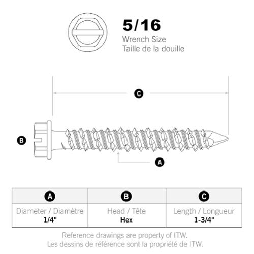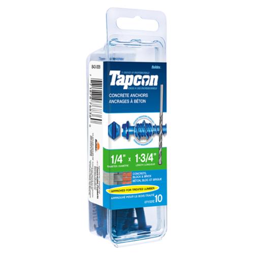 As the original Concrete screw anchor that revolutionized the construction world, Tapcon brand Concrete anchors deliver the ease of use, superior precision and the unparalleled performance that professionals demand. Tapcon Concrete screw anchors draw from its unique ability to TAP its own threads into Concrete, making it an excellent alternative to expansion anchors, plugs, and lag shields. Use Tapcon Concrete screw anchors for installing sill plates, electrical equipment, furring strips, and many other applications that require fastening into brick, block, or Concrete.
