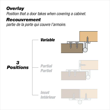 Add the finishing touch to your project with this semi-concealed face frame hinge. This classic self-closing hinge will complement any décor. Ideal for kitchens, bathrooms, furniture, and more.